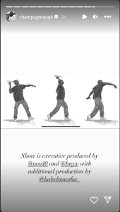Taking to his Instagram story on July 6, Drake shared, “Show is executive produced by @ovo40 and @bnyx with additional production by @kabelomotha.”