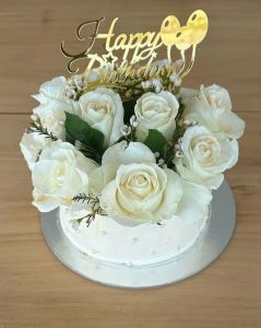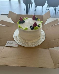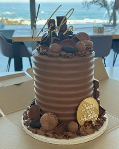 She was presented with three exquisite cakes – one adorned with chocolate icing and macarons, a second boasting a vanilla base crowned with strawberries, and a third elegantly decorated with white roses.